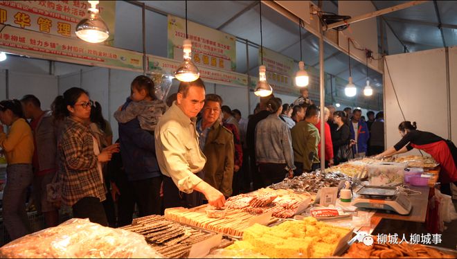 主辦方在縣城白陽廣場設(shè)置了120個(gè)展位。部分展位展出了柳城縣各鄉(xiāng)鎮(zhèn)農(nóng)特產(chǎn)品。干切粉、木瓜絲、黑馬蔗、腐竹等展位吸引了顧客前來挑選購買。