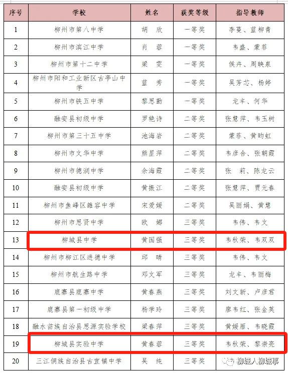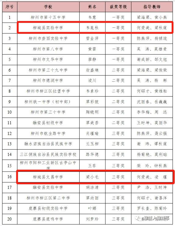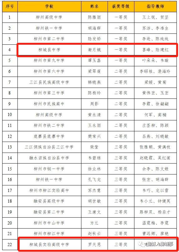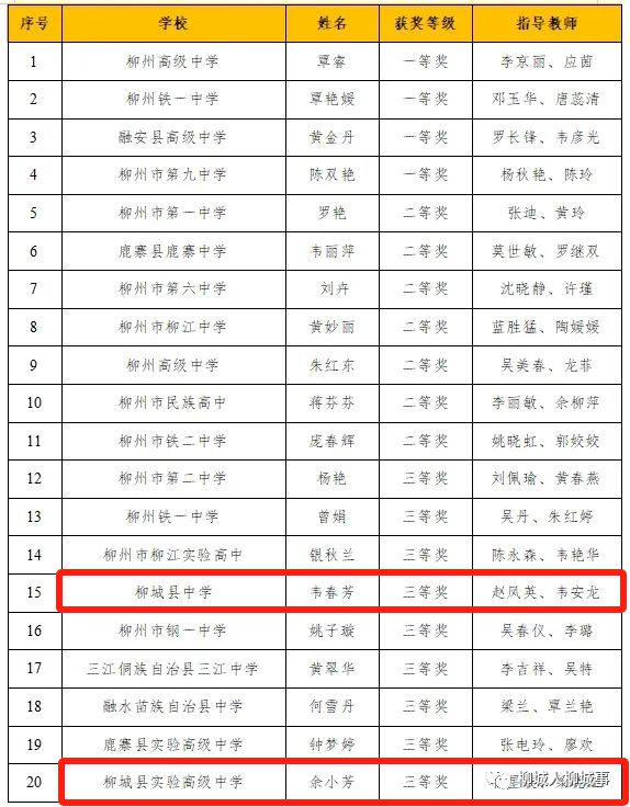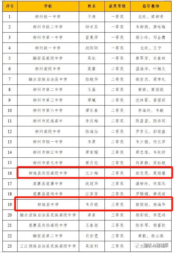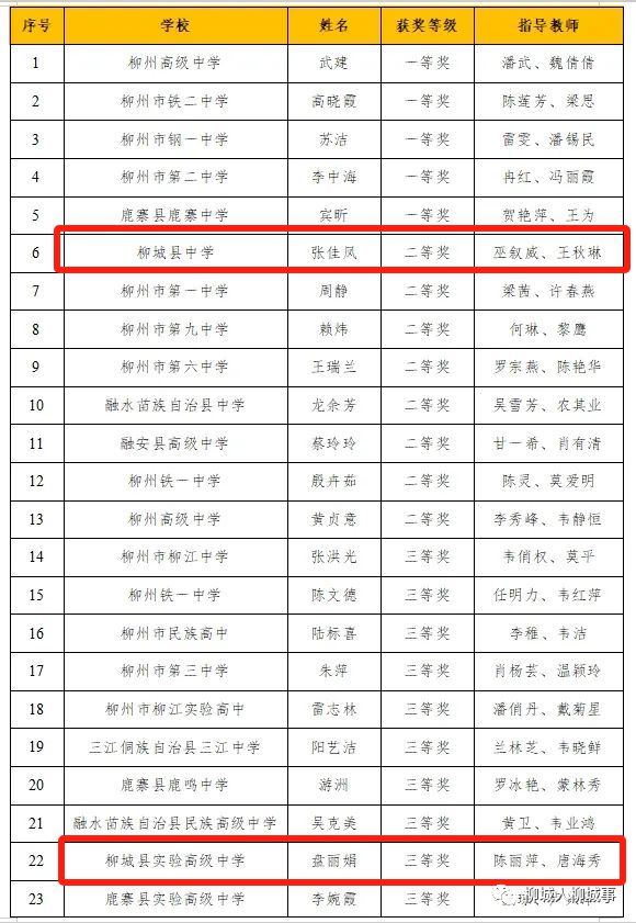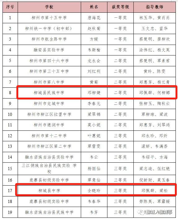 為提高柳州市教師教育教學能力,柳州市教育局組織開展了2023年柳州市初、高中骨干教師教學技能比賽。經(jīng)專家評審、審核,于日前公布了比賽獲獎名單。其中 82 名教師獲一等獎、 122 名教師獲二等獎、 157 名教師獲三等獎。