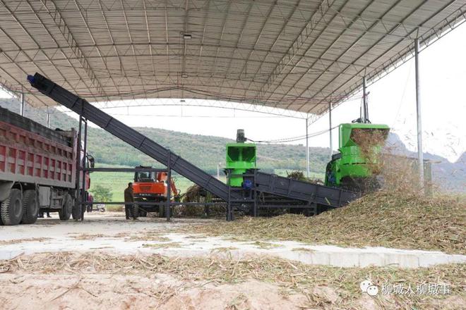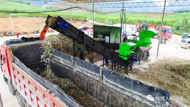 12月12日,柳城縣社沖鄉(xiāng)倉(cāng)貝村下堡門(mén)屯內(nèi)機(jī)械轟鳴聲不斷,下堡門(mén)分布式甘蔗脫葉服務(wù)站建設(shè)完工,站內(nèi)機(jī)械正在進(jìn)行甘蔗除雜,吸引了不少附近村民前來(lái)參觀。