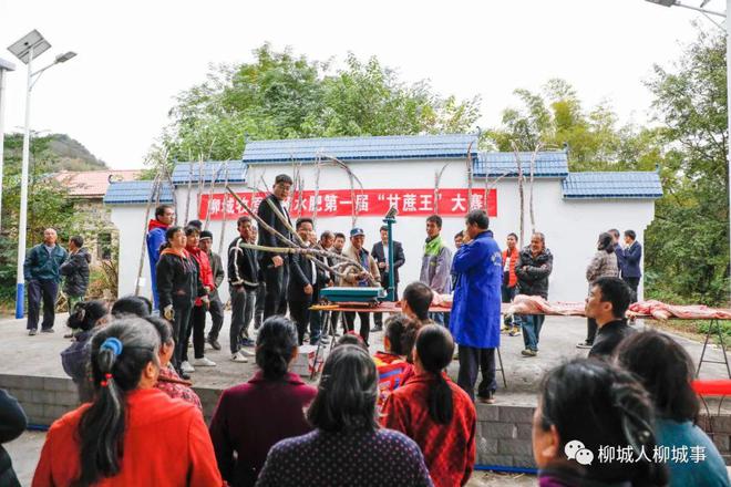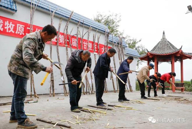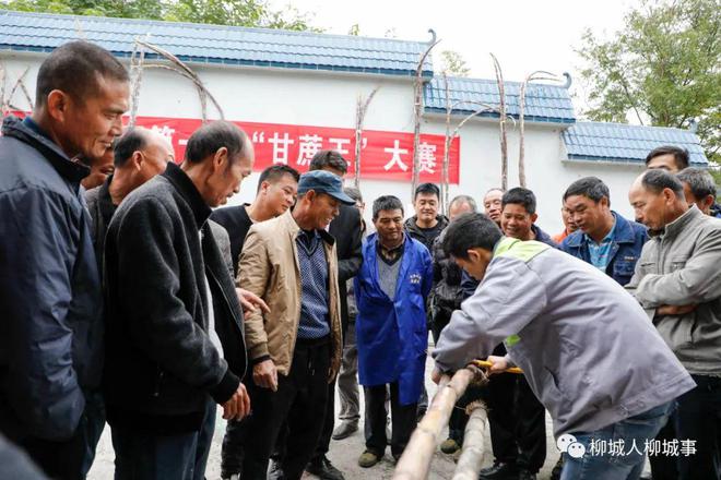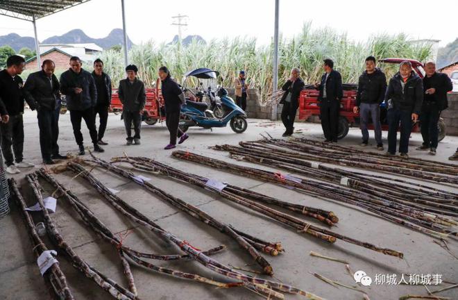 12月12日,柳城縣古砦仫佬族鄉(xiāng)嶺頭村羅寨屯的小舞臺處十分熱鬧,21戶甘蔗種植戶帶著自家種植的甘蔗,參加柳城牧原二場水肥第一屆“甘蔗王”大賽。