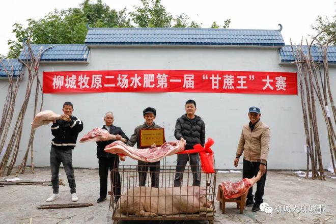 比賽中,在現(xiàn)場群眾的共同見證下,柳城縣農(nóng)業(yè)農(nóng)村局、古砦仫佬族鄉(xiāng)政府工作人員依次對參賽甘蔗進行稱重計量。當甘蔗種植戶梁濟遠的3根甘蔗得出28.6斤的總重量時,現(xiàn)場發(fā)出一陣驚嘆聲和歡呼聲。最終,梁濟遠也憑此獲得“甘蔗王”稱號,并獲得一頭生豬作為獎勵。同時,第二名獲獎?wù)邉t獲得半扇豬獎勵,第三名獲得50斤豬肉獎勵,第四名獲得30斤豬肉和2件牧原工作服獎勵,第五名獲得30斤豬肉獎勵。