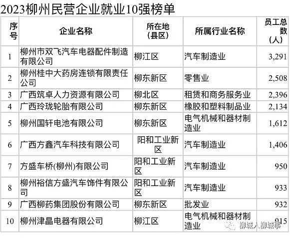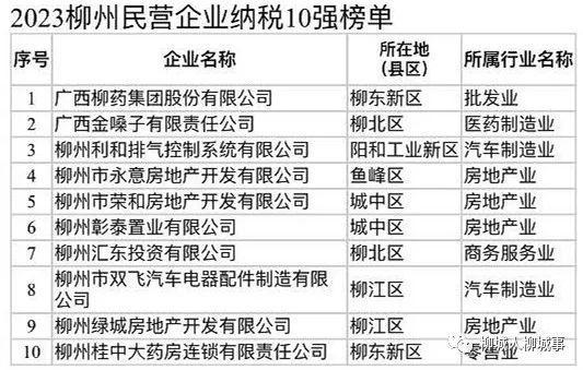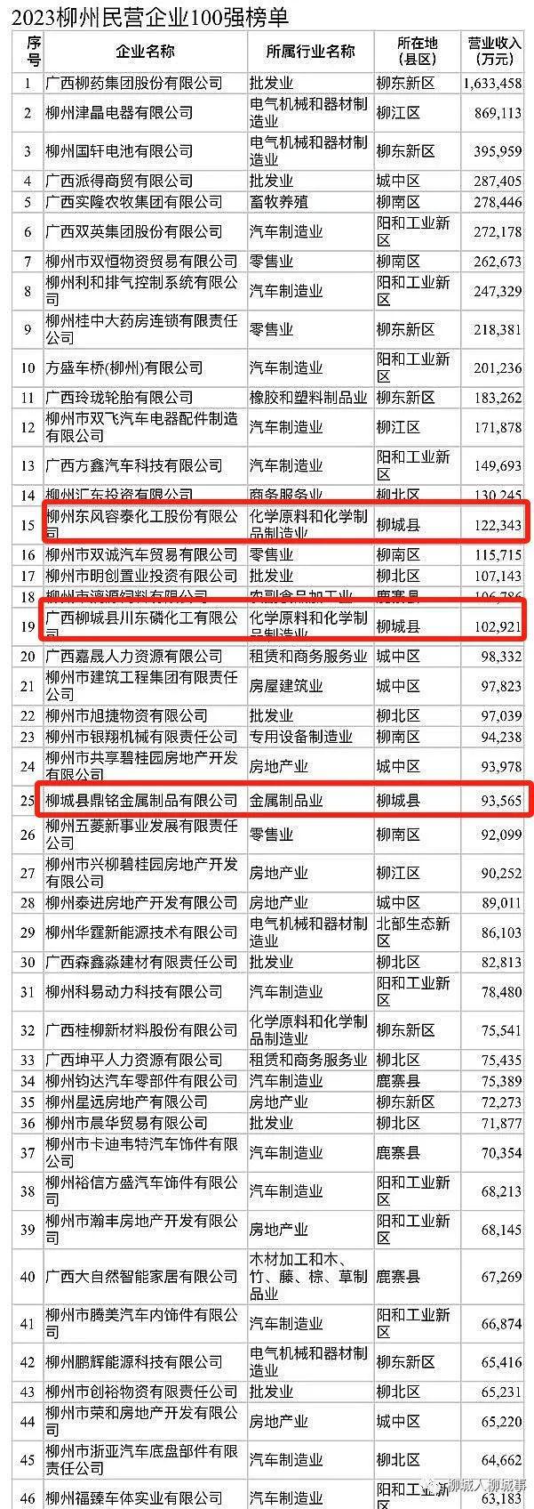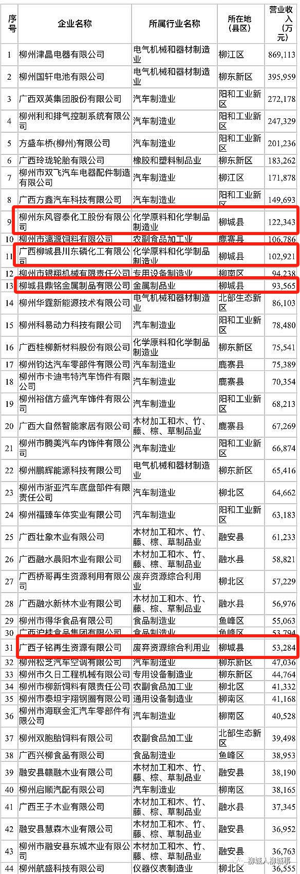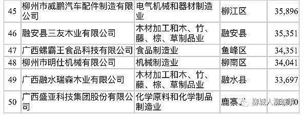2023柳州民營企業(yè)制造業(yè)50強(qiáng)榜單