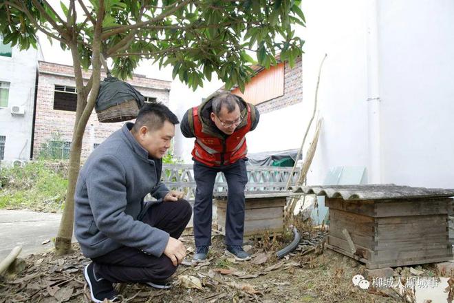 近日,柳城縣氣象部門頻頻發(fā)布霜凍預(yù)警信號。太平鎮(zhèn)西岸村駐村第一書記覃紅交進村入戶走訪的時候,聽到有幾戶村民反映,因為氣溫下降得太快,有些蜂箱里的蜜蜂跑了,希望他幫想想辦法。駐村第一書記覃紅交和西岸村黨總支書記周會師一起研究幫助蜂群順利過冬的辦法。