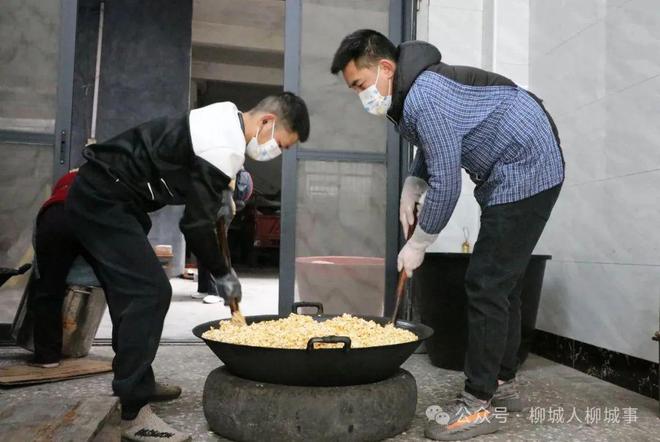 米花糖在柳城也算是一種比較常見的小吃,用大米和玉米兩種食材來做爆米花,再把爆好的米花和糖漿混合,得到一個(gè)圓形的米花球,不同食材,不同口感,但都酥脆香甜,是不少家庭都喜歡備的年貨。