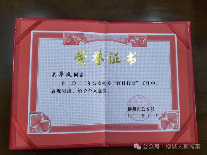 2022年吳翠鳳在公安機(jī)關(guān)“百日行動”工作中表現(xiàn)突出,給予個人嘉獎,2023年獲得了柳州市優(yōu)秀輔警的榮譽(yù)稱號。今年春節(jié),她也依然堅守崗位,以實(shí)際行動踐行職責(zé)使命。