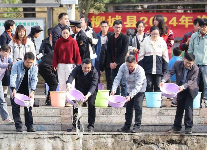 融江河不僅是我們柳城人民的母親河,也是眾多魚類的家園。 2 月 18 日,柳城縣在江濱公園親水平臺舉行增殖放流活動,養(yǎng)護水生生物資源,保護融江生態(tài)環(huán)境。