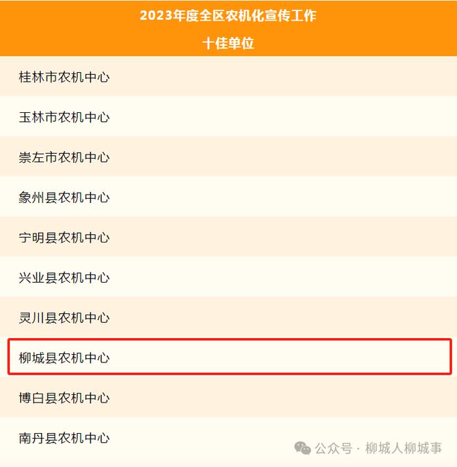 近日,《廣西壯族自治區(qū)農(nóng)業(yè)機(jī)械化服務(wù)中心關(guān)于表揚(yáng)2023年度全區(qū)農(nóng)機(jī)化宣傳工作十佳單位和十佳個(gè)人的通報(bào)》公布,通報(bào)表揚(yáng)了2023年度全區(qū)農(nóng)機(jī)化宣傳工作十佳單位和十佳個(gè)人。其中,柳城縣農(nóng)業(yè)機(jī)械化管理中心榮獲“2023年度全區(qū)農(nóng)機(jī)化宣傳工作十佳單位”稱號。