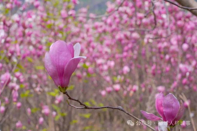 而在大埔鎮(zhèn)雷碑屯的一處田埂邊,一片面積不小的玉蘭花,也伴隨著溫暖的春風(fēng),集體盛開(kāi)。只見(jiàn)枝頭上,粉色的、拳頭般大小的玉蘭花迎著微風(fēng)來(lái)回招搖,仿佛在迎接遠(yuǎn)道而來(lái)的賓客,呈現(xiàn)出一片春意盎然的景象。