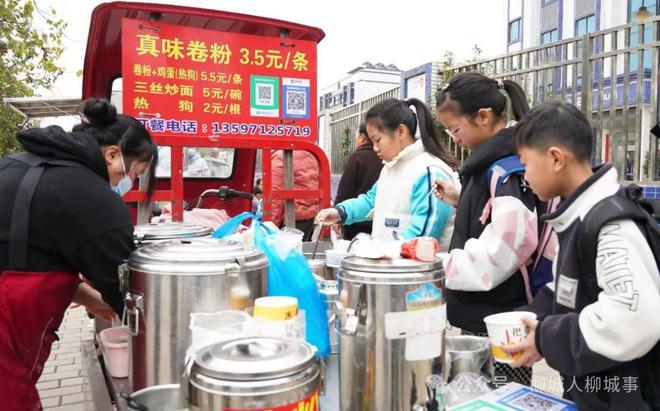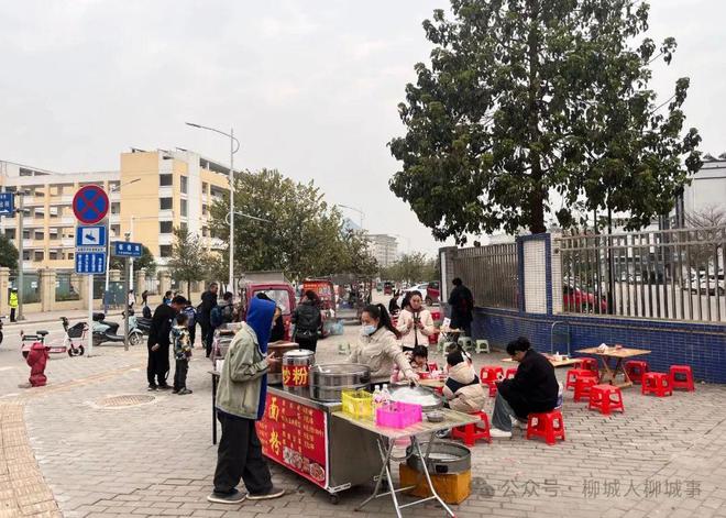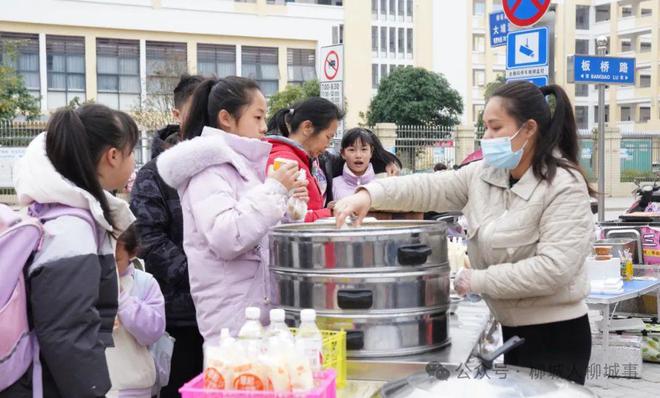 早上7點(diǎn)半,位于白陽(yáng)北路與板橋路相交的路口已是一派熱鬧。為方便在柳城縣實(shí)驗(yàn)小學(xué)教育集團(tuán)總部校區(qū)就讀的學(xué)生吃早餐,柳城縣城市管理行政執(zhí)法局在這里劃定了臨時(shí)限時(shí)便民攤點(diǎn)。炒粉、糯米飯、包子、肉粥應(yīng)有盡有,品種齊全。