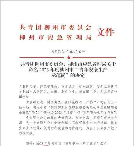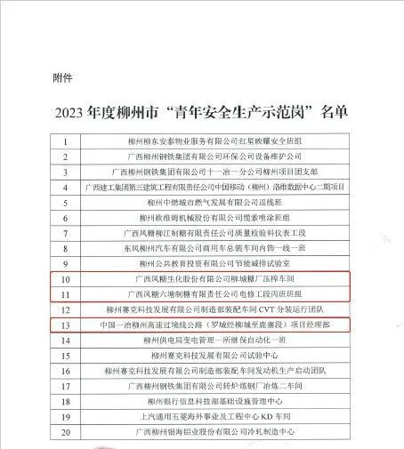 近日,共青團(tuán)柳州市委員會(huì)、柳州市應(yīng)急管理局聯(lián)合公布了 “2023年度柳州市青年安全生產(chǎn)示范崗”名單,其中,柳城縣推薦的廣西鳳糖生化股份有限公司柳城糖廠壓榨車間、廣西鳳糖六塘制糖有限責(zé)任公司電修工段丙班班組、中國(guó)一冶柳州高速過(guò)境線公路(羅城經(jīng)柳城至鹿寨段)項(xiàng)目經(jīng)理部3個(gè)集體獲評(píng)2023年度“柳州市青年安全生產(chǎn)示范崗”。