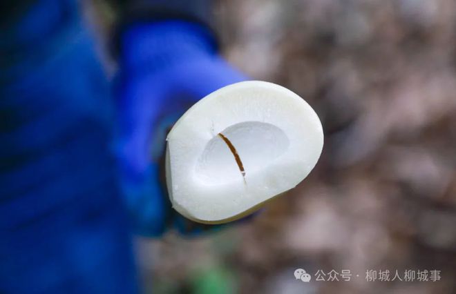 象牙竹葉子纖細,竹竿細長,一根根拔地而起,一整片郁郁蔥蔥。竹林間枯黃的落葉中,冒出一個個“小尖腦袋”,把這些“腦袋”周邊的土扒開、鏟掉,就露出一根外形粗壯、色澤玉白的竹筍?!斑@種筍可以直接生吃,脆脆甜甜,一點不澀,口感像涼薯?!睏顕A介紹說,煮熟之后又是另一種口感,特別鮮甜,無論是素炒,還是炒臘肉,都十分有滋味。