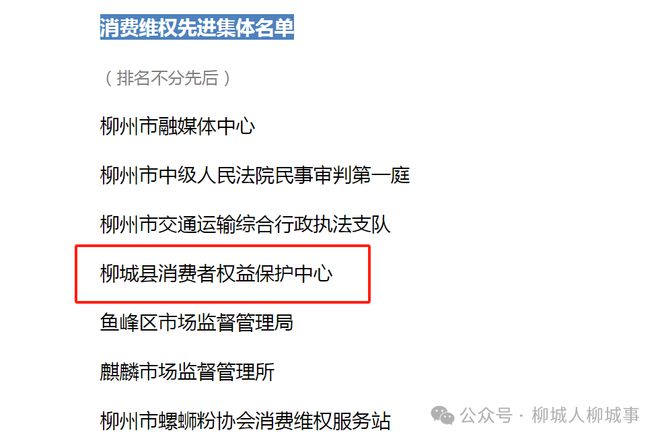 近日,柳州市場監(jiān)管微信公眾號發(fā)布2023年消費(fèi)維權(quán)先進(jìn)集體和“龍城消費(fèi)維權(quán)先鋒”名單。其中,柳城縣消費(fèi)者權(quán)益保護(hù)中心獲評為“消費(fèi)維權(quán)先進(jìn)集體”,黃蕙、謝民富獲評為“龍城消費(fèi)維權(quán)先鋒”。