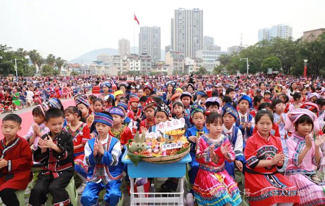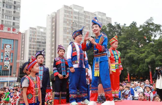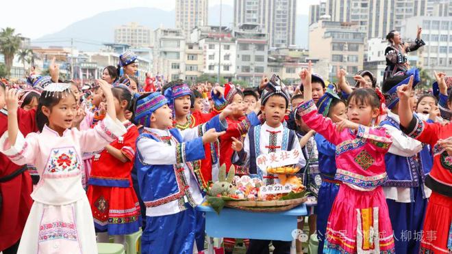 4月9日,鑄牢中華民族共同體意識(shí)——“潮起三月三 奮進(jìn)新征程”2024年柳城縣中小學(xué)校各族青少年交流主題實(shí)踐活動(dòng),在縣城白陽(yáng)廣場(chǎng)舉行。來(lái)自柳城縣實(shí)驗(yàn)小學(xué)教育集團(tuán)的師生身著少數(shù)民族服飾,唱著山歌跳著舞,共同慶祝“廣西三月三”。