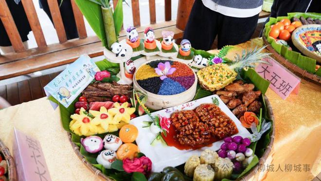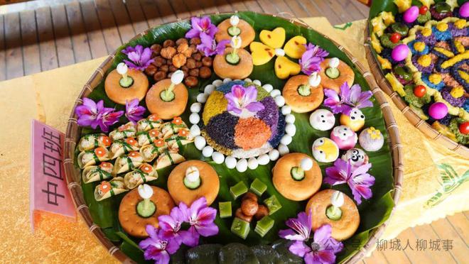 最令大家期待的就是簸箕美食評比環(huán)節(jié)了。各個班級使出十八般武藝,用糍粑、彩色糯米飯、紅雞蛋等食材,擺出一份份造型獨(dú)特、創(chuàng)意十足的簸箕美食。