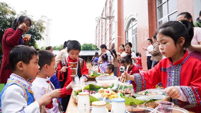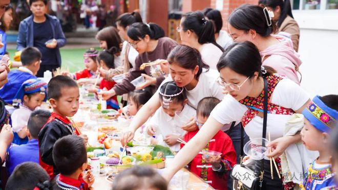 4月9日,柳城縣中心幼兒園舉辦“潮起三月三 奮進(jìn)新征程”慶祝活動。全體師生身著少數(shù)民族服飾載歌載舞,擺設(shè)長桌宴,共享美食,歡慶“廣西三月三”。