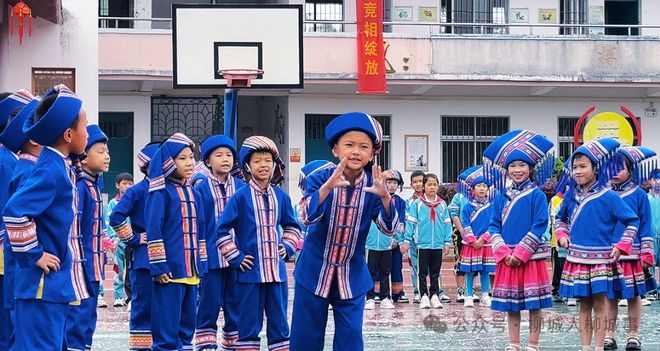 活動的當天,太平中心小學校園里吸人眼球的除了壯歡,還有生動有趣的山歌對唱。別看一群萌娃年紀小,但是唱起山歌來動作到位,感情充沛,表情可愛,舉手投足都是有模有樣的。
