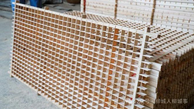 近日,小編來到柳城縣大埔鎮(zhèn)敬祥木材加工廠,工人們將鋸成薄條狀的木板進行拼接,再捶打壓實,不到四分鐘一片方格簇便制作好了。老板李敬祥說,目前廠里制作有1米乘0.65米等三種規(guī)格的方格簇,滿足不同蠶農的購買需求。
