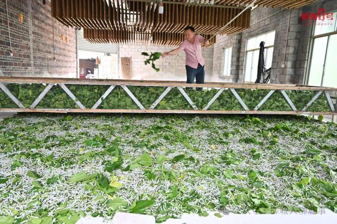 “站在軌道上撒桑葉,非常方便,省時(shí)省力?!表f福有說,現(xiàn)在養(yǎng)的是今年的第一批蠶,140多平方米的蠶房,共養(yǎng)了三張蠶,目前已養(yǎng)到四齡,再過一個(gè)星期左右,就達(dá)到五齡。他說,以前給蠶投喂桑葉,為了避免踩到蠶寶寶,都是踩著磚頭或者踮著腳尖投放桑葉,不僅費(fèi)時(shí)費(fèi)力,腳底還容易給蠶寶寶帶來病菌,如今家家養(yǎng)蠶戶的蠶房?jī)?nèi)都安裝了軌道槽,有些軌道槽還可以通過電力驅(qū)動(dòng),實(shí)現(xiàn)了自動(dòng)化投喂,人站在軌道槽上就可以直接撒桑葉,“以前要幾個(gè)人做的工,現(xiàn)在一個(gè)人就能完成。”