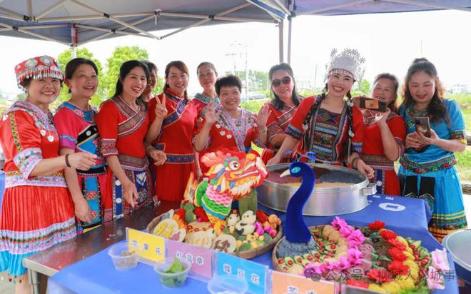 現(xiàn)場還設(shè)置了特色農(nóng)產(chǎn)品集市、壯家美食手作體驗、團(tuán)扇制作、對山歌、百家宴等豐富多彩的活動,讓眾多游客們上前游玩體驗。