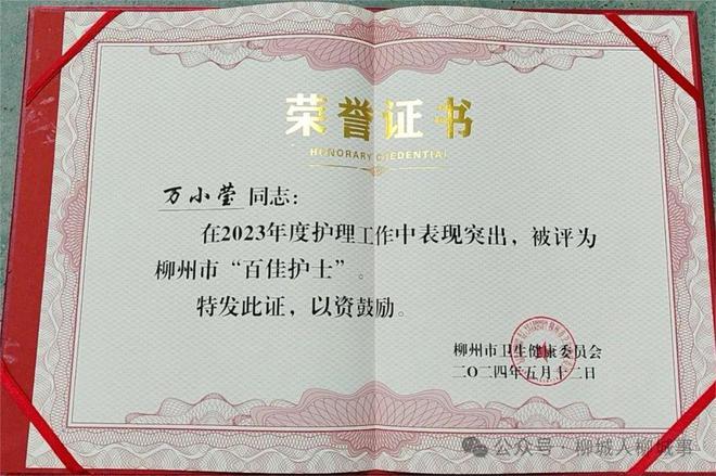 萬小瑩是柳城縣人民醫(yī)院消化呼吸內(nèi)科的一名普通護士。在第113個國際護士節(jié)來臨之際,她走上了柳州市“百佳護士”榮譽稱號的領(lǐng)獎臺。