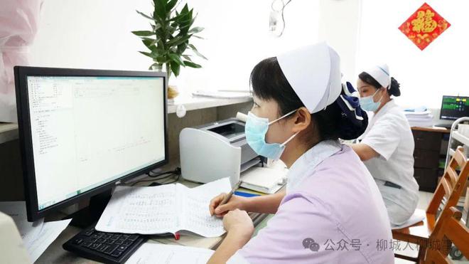 護士站,她認(rèn)真核對患者信息,檢查護理記錄;