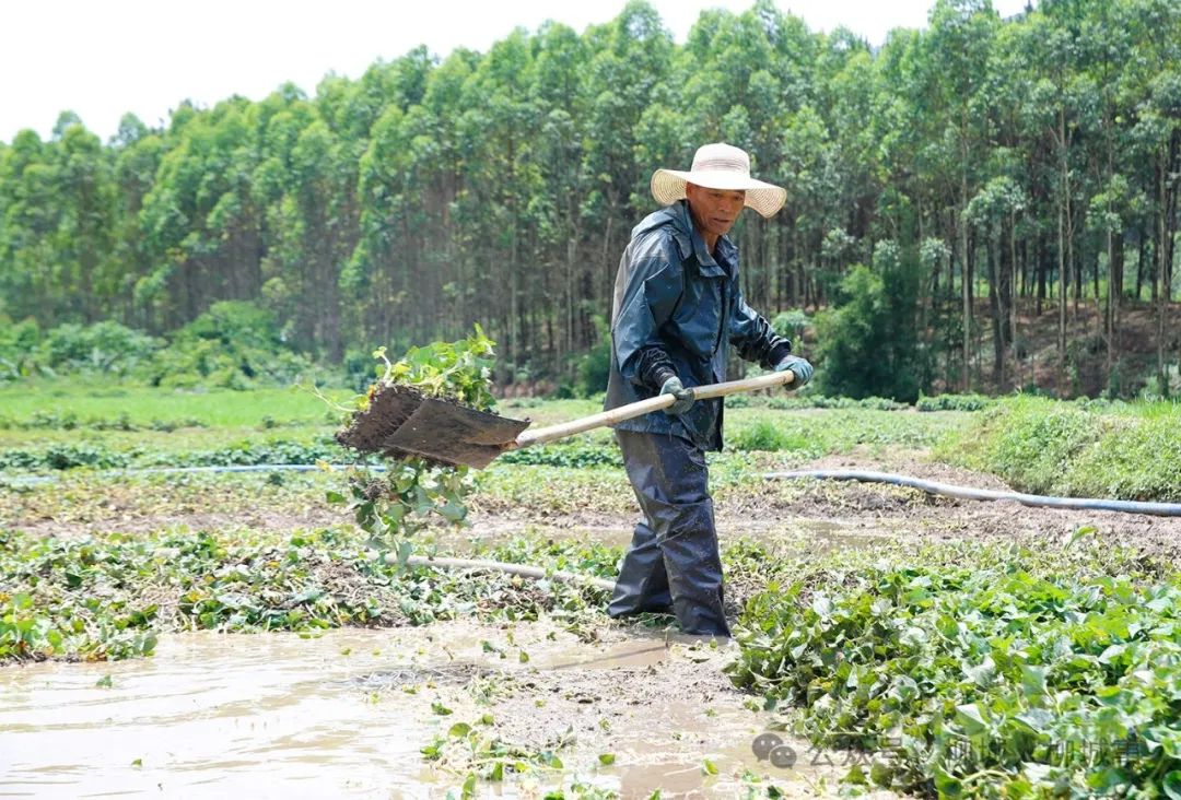“今天的訂單是900斤,老板到地頭的收購(gòu)價(jià)2.3—2.5元每斤?!?月13日中午12點(diǎn)30分,太陽(yáng)火辣辣的。東泉鎮(zhèn)莫道村岑卜屯的村民羅秦恒夫婦倆還舍不得“下班”,拿著高壓水槍在田里挖新鮮的魚(yú)腥草。