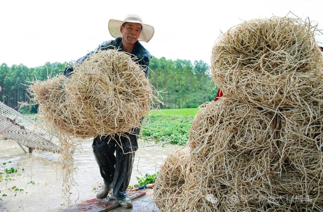 只見(jiàn)羅秦恒用長(zhǎng)形的平頭鐵鏟將魚(yú)腥草的苗鏟掉,鋒利的鐮刀壓進(jìn)土里,用力一拉,就著泥巴的魚(yú)腥草塊就被分割好了。高壓水槍的水管探到土里,借著水壓的沖力,一塊魚(yú)腥草漸漸地在水面漂起來(lái)。羅秦恒在左右手拿著釘耙和老婆分工合作,很快把一大塊魚(yú)腥草抬到了清洗網(wǎng)上。高壓水槍沖刷,白花花的魚(yú)腥草現(xiàn)出了“原形”。