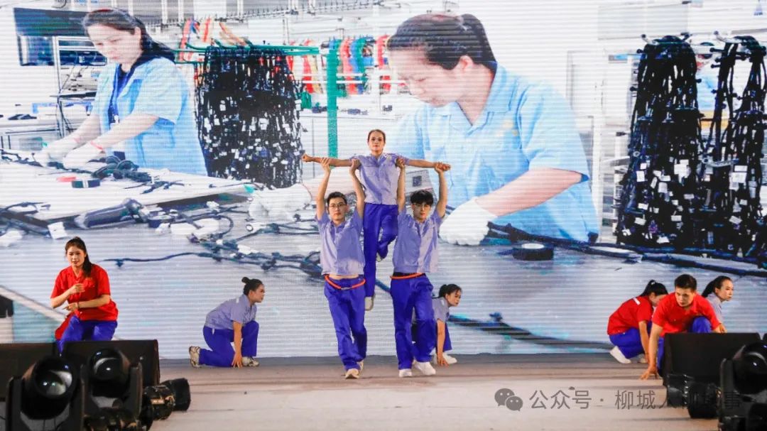 在柳州市雙飛汽車(chē)電器配件制造有限公司工會(huì)委員會(huì)代表隊(duì)的節(jié)目《制造魂》中,職工們身著工裝,在激昂動(dòng)感的音樂(lè)聲中忙碌工作,爭(zhēng)分奪秒完成訂單任務(wù),亦歌亦舞間將觀眾帶至火熱的生產(chǎn)車(chē)間。