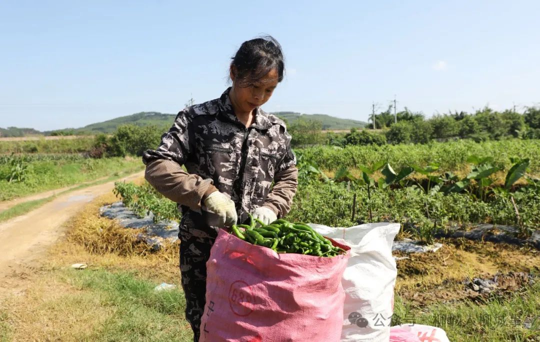 小編來到東泉鎮(zhèn)前屯村新村屯,只見大片綠油油的辣椒長勢喜人,半米高的辣椒枝條上,成熟的辣椒掛滿枝頭。椒農們在田間地頭來回穿梭,將一個個青翠飽滿的辣椒摘入籃中,搬運、分揀、裝袋,現(xiàn)場一片豐收繁忙景象。