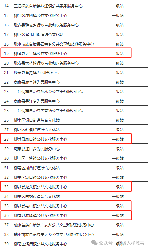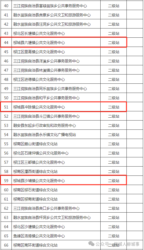 近日,柳州市文化廣電和旅游局組織開展對全市各縣區(qū)2024年第一批次鄉(xiāng)鎮(zhèn)(街道)綜合文化站評估定級工作,擬推薦鄉(xiāng)鎮(zhèn)(街道)綜合文化站特級站13個、一級站26個、二級站27個、三級站6個報自治區(qū)文化和旅游廳審核、復查。其中,柳城縣有9個公共文化服務中心上榜。