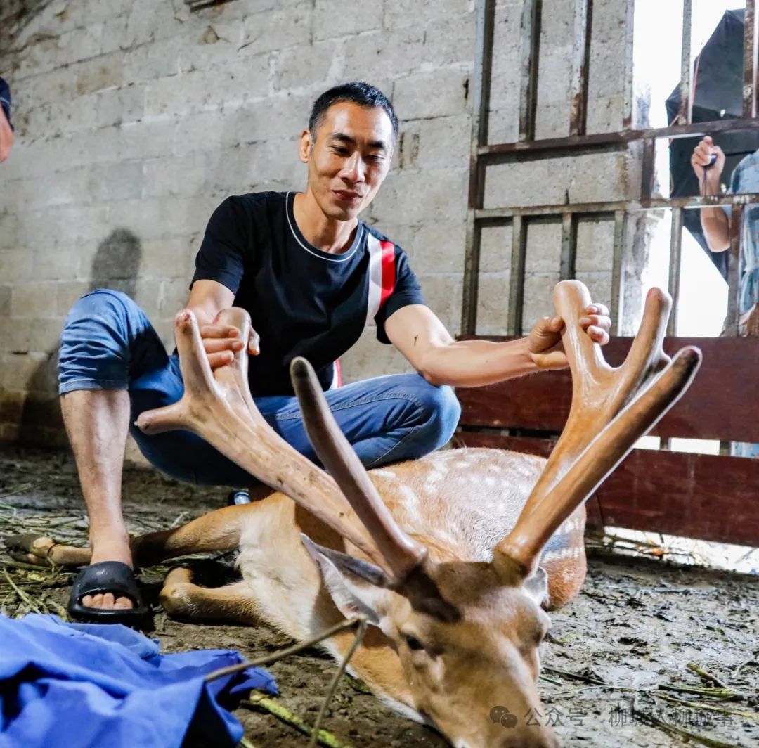 近日,柳城縣六休村山腳屯的一個客廳里熱鬧非凡,擠滿了一撥又一撥客人,寬敞的客廳都稍顯擁擠。男女主人忙前忙后的招呼著,端茶倒水、準(zhǔn)備采割鹿茸器具忙得不亦樂乎,這里就是我們柳城的第一家養(yǎng)鹿基地——楊華的家里。