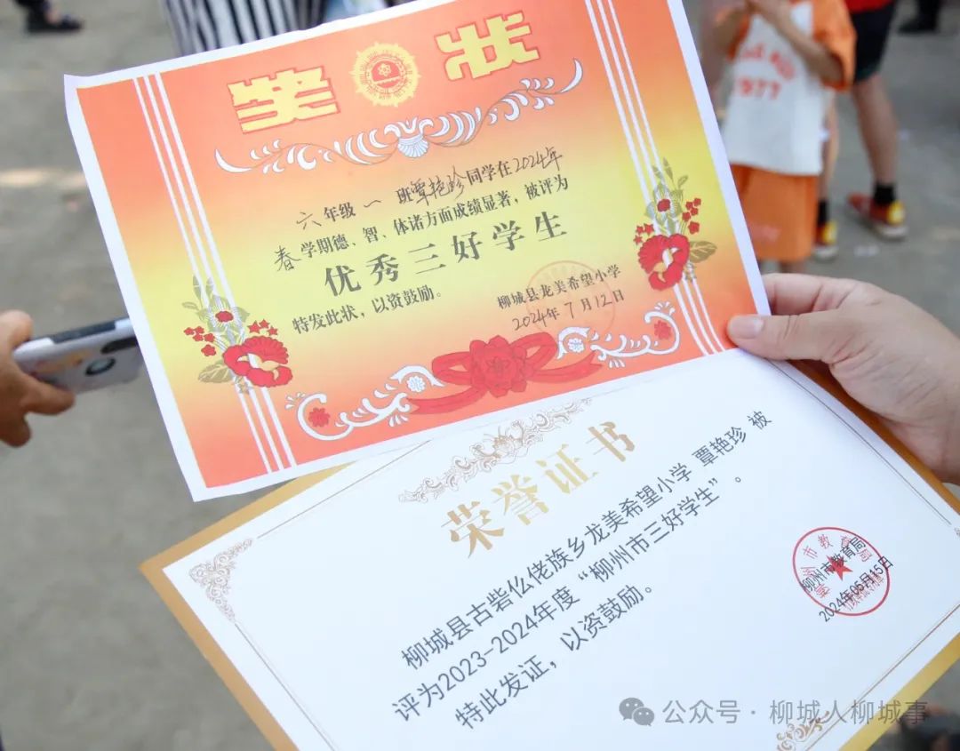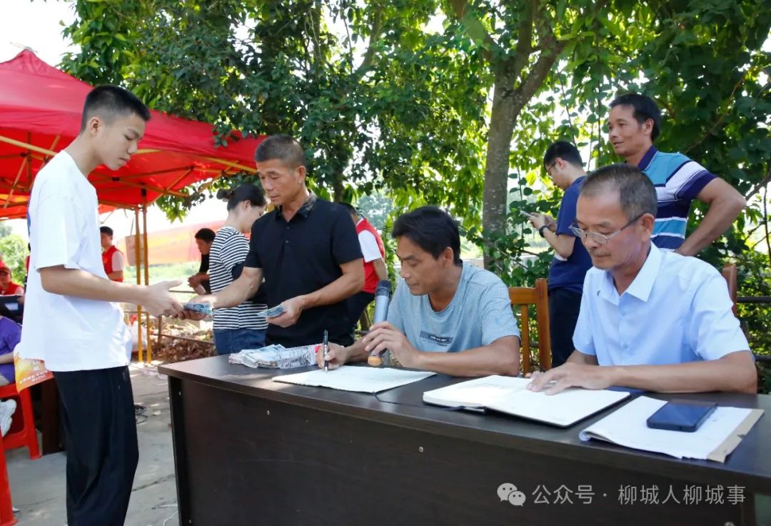 7月25日,柳城縣古砦仫佬族鄉(xiāng)龍美村覃村屯的村民放下了手里的農(nóng)活,帶著孩子早早聚集覃村屯村口的榕樹腳下。屯里的獎(jiǎng)學(xué)會(huì)要給98名從幼兒園到大學(xué)本科的學(xué)生發(fā)放20元至500元不等的獎(jiǎng)學(xué)金,共計(jì)7600元。