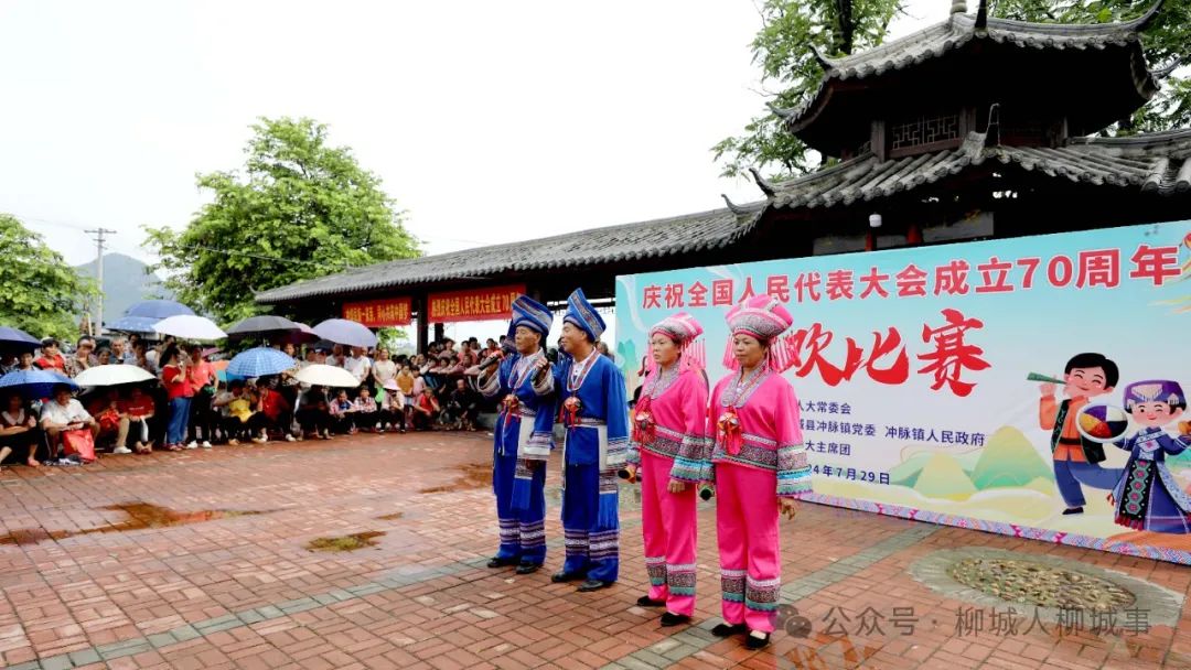 在柳城縣沖脈鎮(zhèn)壯歡歌圩上,由柳城縣人大常委會主辦的慶祝全國人民代表大會70周年壯歡比賽正火熱進(jìn)行中。