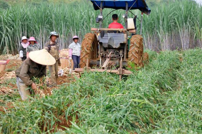 近日,在柳城縣馬山鎮(zhèn)大龍村外大龍屯的生姜地里,呈現(xiàn)出一派繁忙景象。一臺小型鉤機穿梭在一壟壟的生姜間,弄松泥土后,工人輕輕拔出一株株生姜,其他工人用剪刀把綠油油的生姜葉剪掉,再把生姜裝入籃里,一籃籃搬上車,準備運到市場。