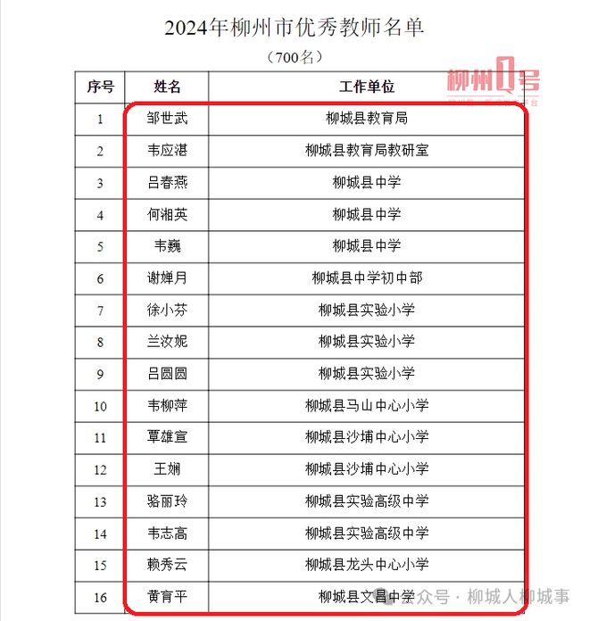 2024年柳州市優(yōu)秀教師名單。(部分節(jié)選)