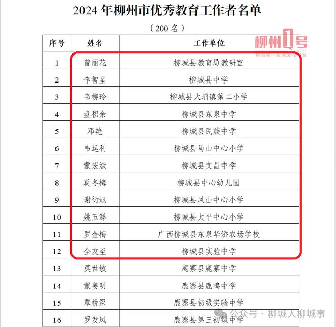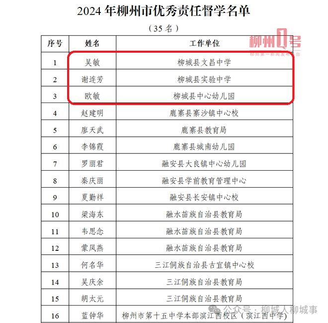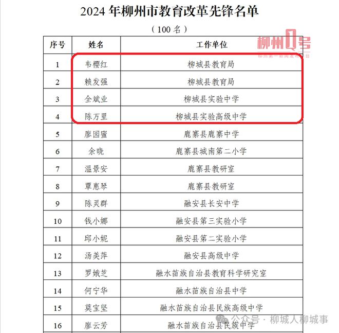 2024年柳州市教育改革先鋒名單。(部分節(jié)選)