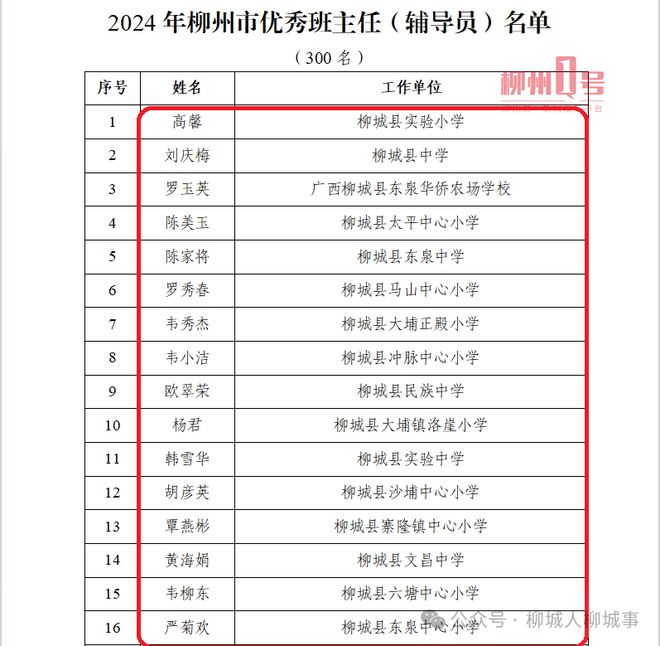 2024年柳州市優(yōu)秀班主任(輔導員)名單。(部分節(jié)選)
