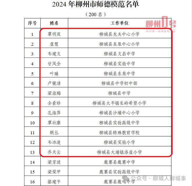 2024年柳州市師德模范名單。(部分節(jié)選)