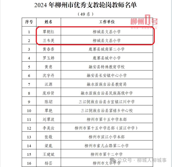 2024年柳州市優(yōu)秀支教輪崗教師名單。(部分節(jié)選)