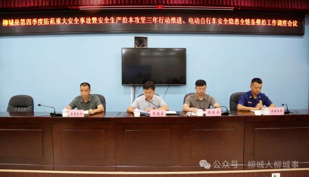 近日,在自治區(qū)、柳州市第四季度防范重特大安全事故暨安全生產(chǎn)治本攻堅(jiān)三年行動(dòng)推進(jìn)電視電話會(huì)議后。柳城縣接著召開(kāi)第四季度防范重大安全事故暨安全生產(chǎn)治本攻堅(jiān)三年行動(dòng)推進(jìn)、電動(dòng)自行車安全隱患全鏈條整治工作調(diào)度會(huì)議。