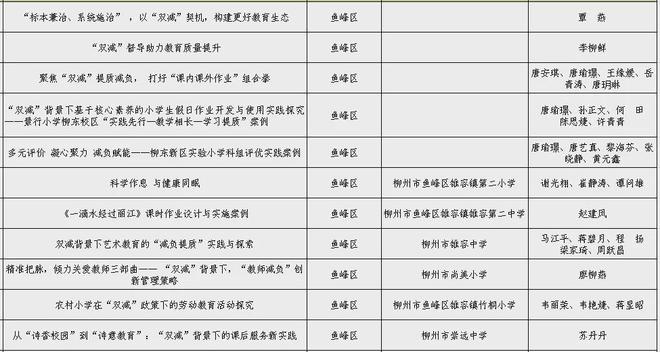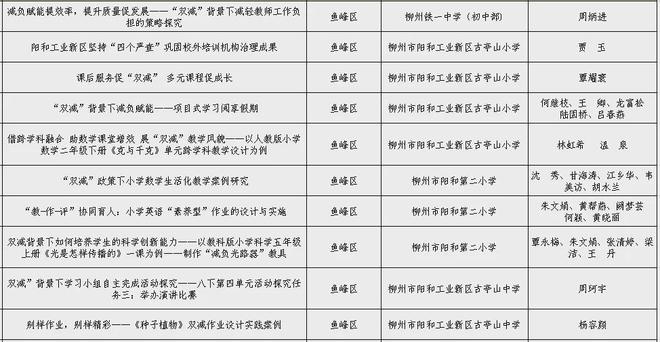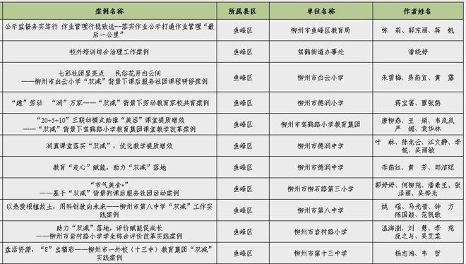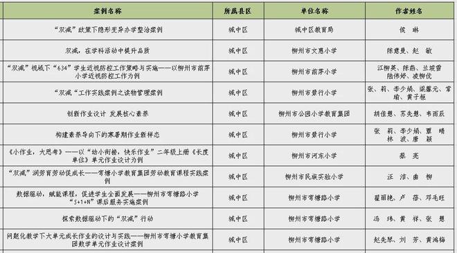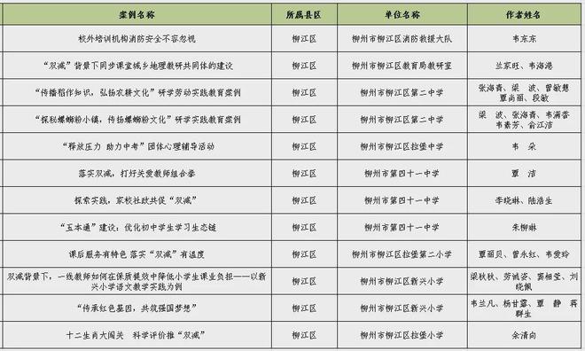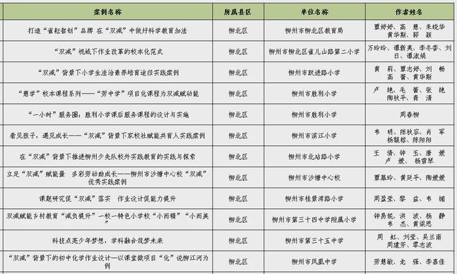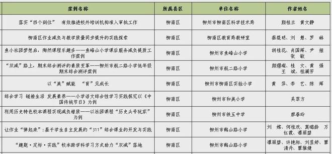 為進(jìn)一步總結(jié)提煉“雙減”工作“柳州經(jīng)驗(yàn)”,日前,市“雙減”辦面向全市進(jìn)行“雙減”優(yōu)秀實(shí)踐案例征集,經(jīng)各單位推薦、組織專家評審、綜合評定,公示無異議,在479個(gè)案例中評選出120個(gè)案例為2024年柳州市第一批“雙減”優(yōu)秀實(shí)踐案例。