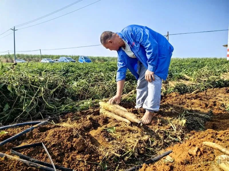 韋福龍說,前些年自己一直在外打工,2019年回到家鄉(xiāng)后,發(fā)現(xiàn)家鄉(xiāng)的土壤非常松軟,很適合種植淮山,本地人過去也種植過淮山,而且這里種出的淮山含有豐富的微量元素,是本地的特色土貨。但后來很多村民都外出打工了,種淮山的人越來越少,全鄉(xiāng)種植淮山的規(guī)模不到千畝。韋福龍看準(zhǔn)了這里的商機(jī),于是租用村民30多畝土地種植淮山,開始創(chuàng)業(yè),發(fā)展的勢(shì)頭迅猛,幾年時(shí)間就擴(kuò)大到100多畝?!拔沂莻€(gè)新農(nóng)人,一方面在家門口就可以創(chuàng)業(yè),一方面也可以照顧家里的父母?!表f福龍說。
