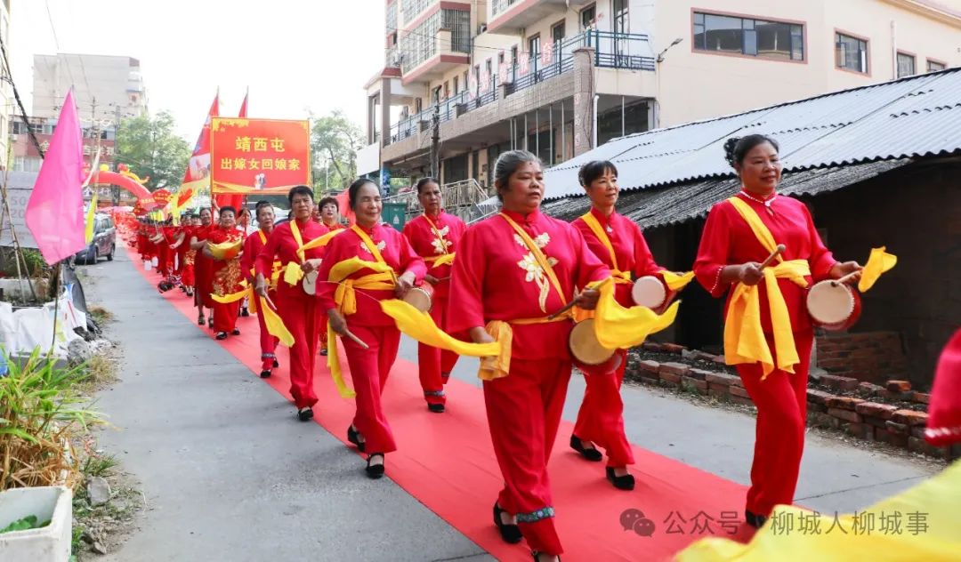 活動當(dāng)天,靖西屯處處彌漫著喜慶的氣息,村口彩旗飄揚,“歡迎外嫁女回娘家”的橫幅標(biāo)語隨處可見。靖西屯外嫁的女兒們穿著統(tǒng)一的服裝,排著整齊的隊伍朝村里走來,臉上洋溢著幸福的笑容,而家里的老人,早已在村口翹首以盼。