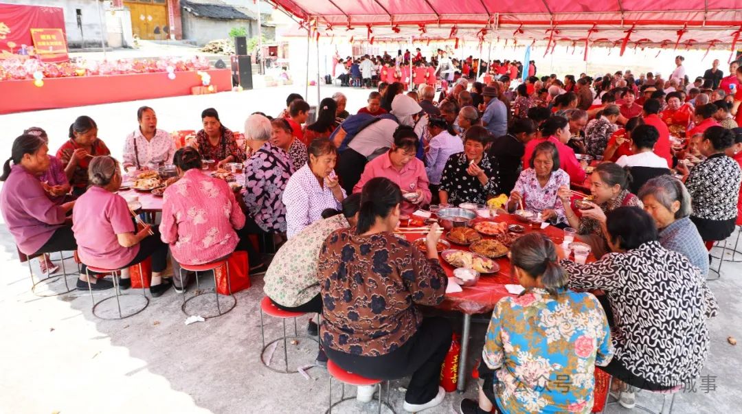 活動現(xiàn)場,最為熱鬧的是團圓餐,村民與老人們圍坐在一塊,笑聲不斷,其樂融融?!拔?01歲了,得到2000元紅包,很開心?!绷荷P是蕩坪屯最年長的老人,每年都會被邀請來參加村里舉行的重陽節(jié)活動。此次活動,蕩坪屯還邀請回鄉(xiāng)人員、知青以及外嫁女子一同參加。