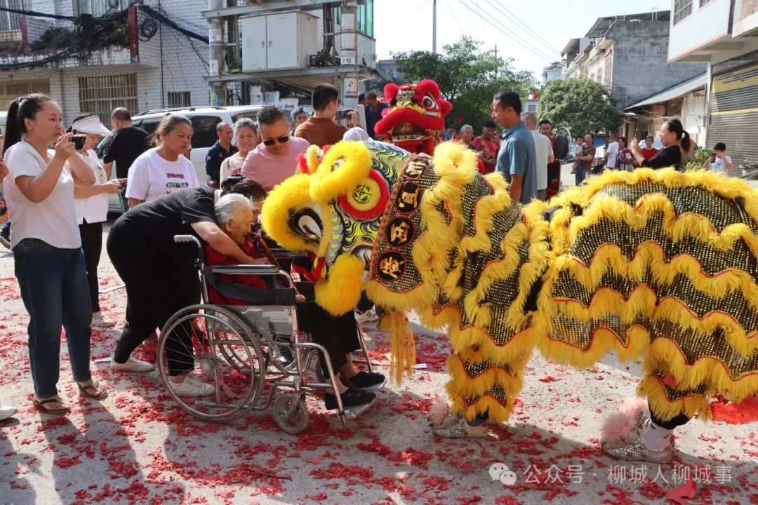 據(jù)悉,此次活動共籌集善款4萬余元,用于重陽節(jié)當(dāng)天的舞獅表演、長桌宴及文藝演出。當(dāng)天早上10時,伴隨著鞭炮聲的響起,來自宜州的舞獅團從沖脈社區(qū)居委會辦公室出發(fā),進(jìn)行繞街表演。活動中,舞獅者不斷朝著周圍的老人進(jìn)行節(jié)日的祝賀。本地愛心人士也為此次前來參加活動的200余位65歲以上老人佩戴紅花,贈送保溫杯、臉盆等日常用品,同時為80歲以上的老人煮了長壽面。