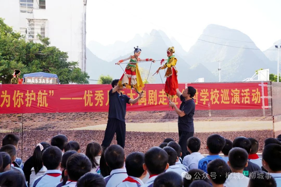 10月23日,由自治區(qū)文明辦主辦,柳州市文明辦、柳城縣文明辦協(xié)辦,廣西木偶劇團(tuán)有限責(zé)任公司承辦的“同心筑夢 為你護(hù)航”——優(yōu)秀兒童木偶劇走進(jìn)鄉(xiāng)村學(xué)校少年宮巡演活動在柳城縣古砦仫佬族鄉(xiāng)龍美希望小學(xué)開展,為師生們帶來了一場精彩的戲劇盛宴,讓他們近距離感受非遺文化的獨特魅力。