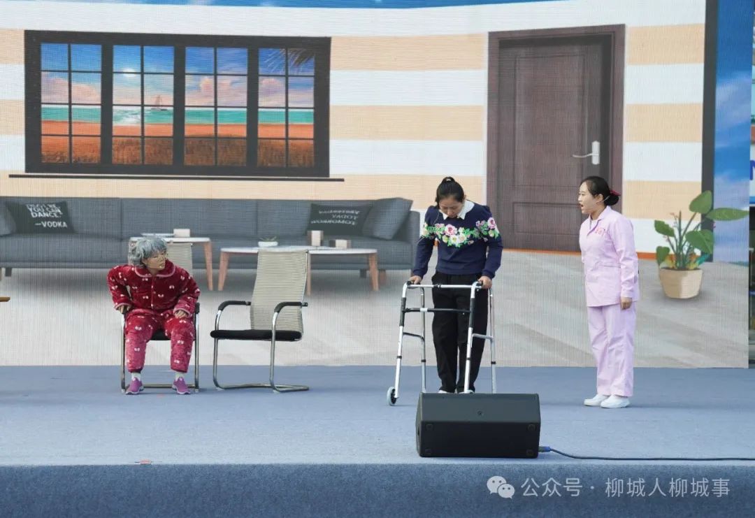 活動(dòng)現(xiàn)場(chǎng),柳州市老齡委常務(wù)副主任、市人民政府副市長(zhǎng)盧柳屏,柳城縣縣長(zhǎng)何韜依次上臺(tái)致辭;彩調(diào)表演《十月花》、太極表演等節(jié)目陸續(xù)上演;相關(guān)人員展示了“居家場(chǎng)景下指導(dǎo)老人使用助行器行走”“機(jī)構(gòu)場(chǎng)景下的穿脫衣服訓(xùn)練”兩個(gè)老年人康養(yǎng)護(hù)理過(guò)程,就如何對(duì)行動(dòng)不便的老人進(jìn)行心理疏導(dǎo)、幫助他們掌握助行器使用方法、指導(dǎo)行動(dòng)不便的老人進(jìn)行基本的穿脫衣服訓(xùn)練等進(jìn)行全方位講解。