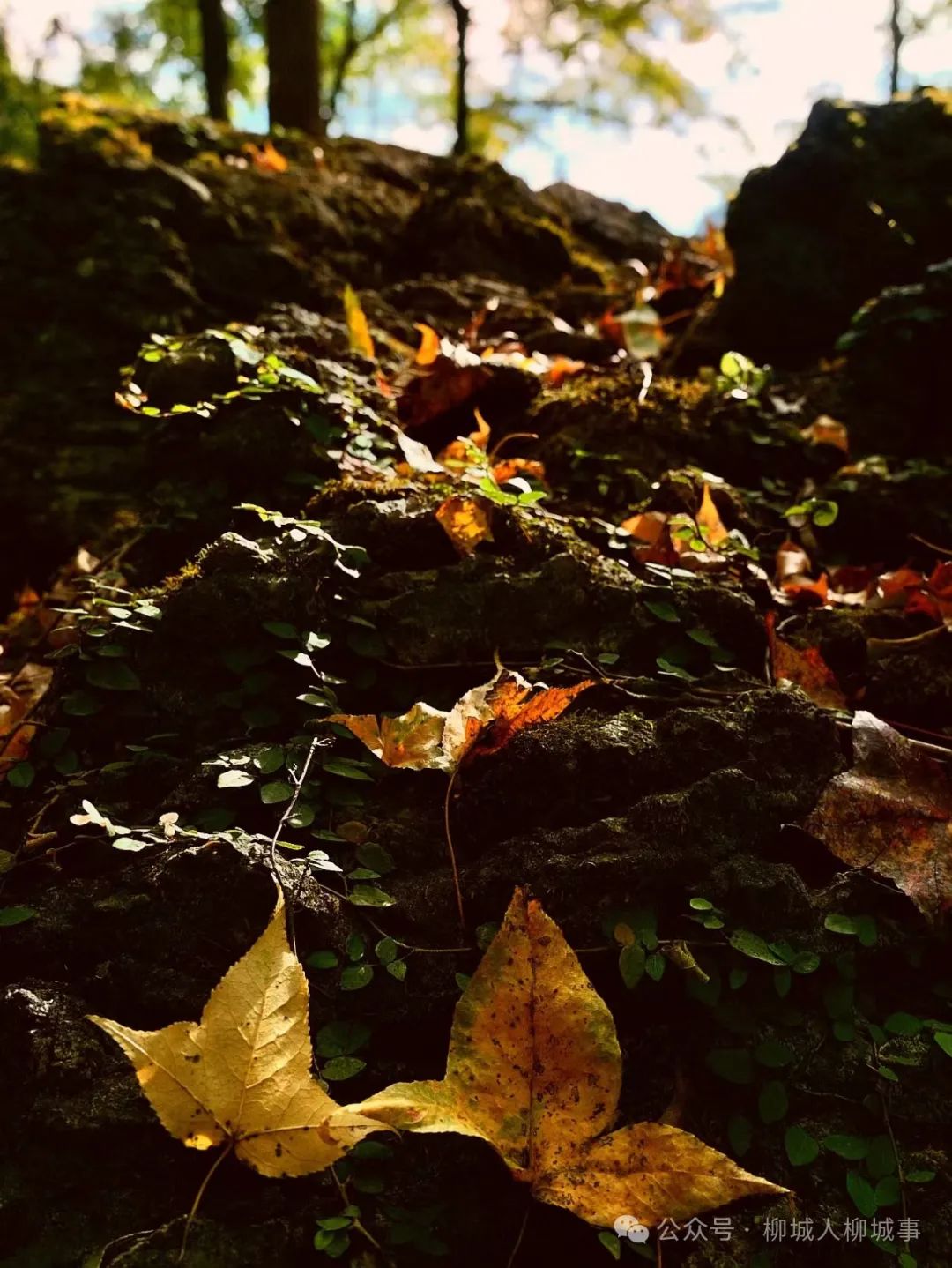 入目之處,漫山遍野綠植環(huán)繞,層層疊疊,郁郁蔥蔥。亮亮的太陽光透過樹葉,打在山石、野草上,打在锃亮的石板路上和厚厚的落葉上,光影斑駁,天與地鑲上金邊,黃與綠相映成趣,美如一幅油畫。
