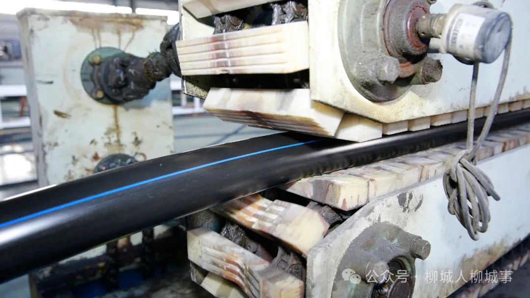在廣西頤??萍加邢薰旧a(chǎn)車間內(nèi),小編看到,工人們正在熟練地操作機(jī)器制管。在經(jīng)過道道工序,根根聚乙烯PE給水管在自動(dòng)化機(jī)器上被擠塑成型。