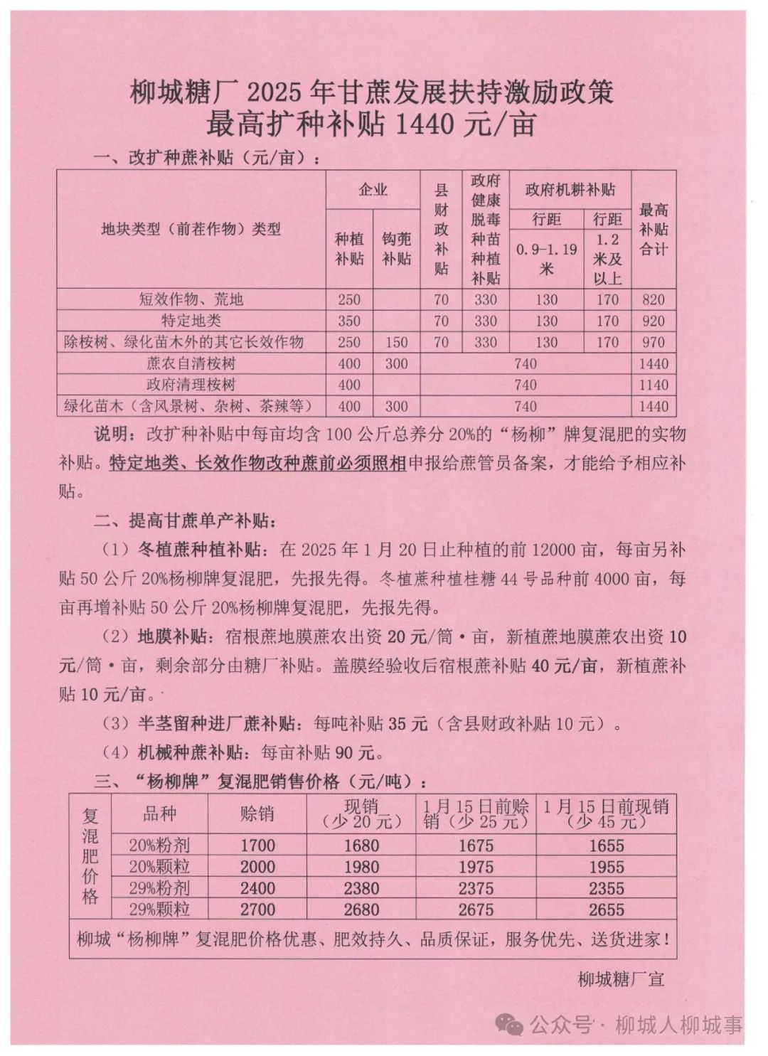 為了激勵(lì)群眾擴(kuò)大甘蔗種植規(guī)模,政府、糖廠出臺(tái)了各類補(bǔ)貼政策,對(duì)自行清理桉樹、綠化苗木等地改擴(kuò)種甘蔗的,最高可給予補(bǔ)貼1440元/畝;使用機(jī)械種植甘蔗的另外給予機(jī)械種蔗補(bǔ)貼90元/畝。